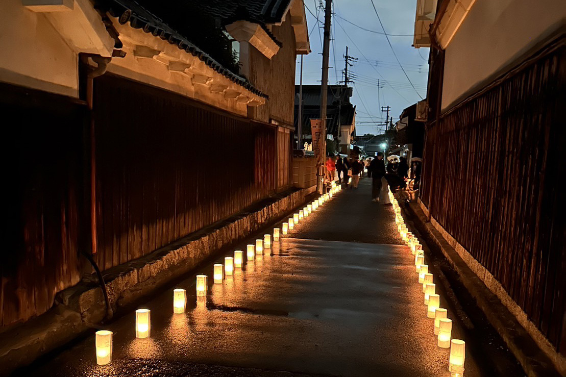 また、私の記憶に強く残っている企画がもうひとつ。それが、御所まちの街道沿いに子どもたちが描いた灯籠が並び、夜のまちをやさしく照らす「まち灯り」です。昼間とは違う表情を見せるまちの風景が、とても印象的でした。