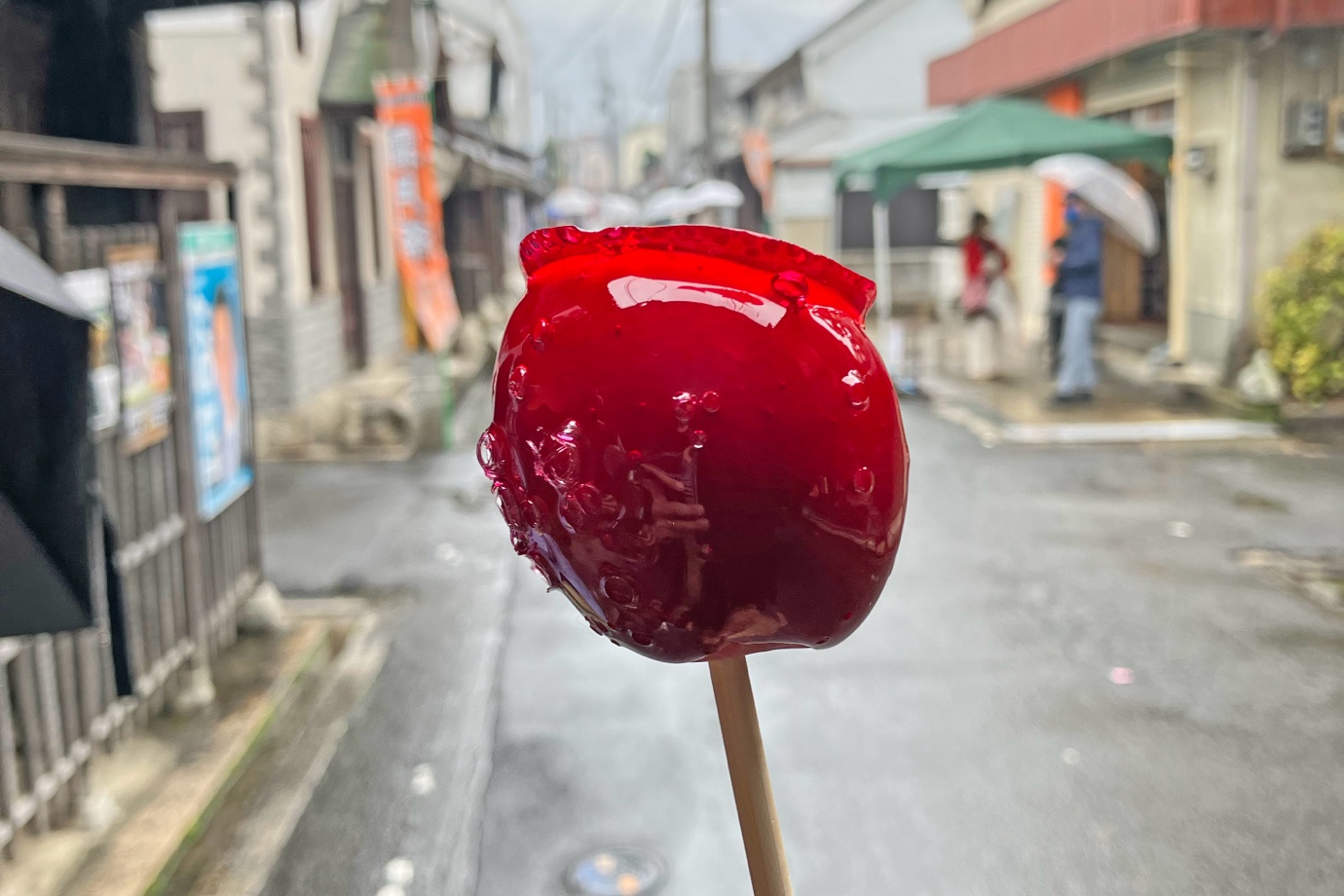 紅葉が色づき始めるころ。石畳の通りに出店が並び、オレンジ色ののぼりがあちこちに掲げられた御所まちには、人々の笑い声とともにおいしそうな香りが漂います。