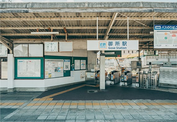 近鉄御所駅からスタート。駅を降りて少し歩くと、昔ながらのアーケード商店街や昭和レトロな面影が残る風景が、これからの旅のワクワクを高めてくれます。