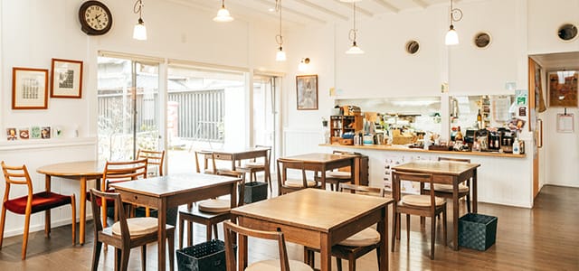 旧郵便局の建物を改修した居心地のよいカフェです。地元の食材を使ったランチや、季節のスイーツパフェが人気。テーブルの引き出しを開けると、手紙のセットが入っています。大切な人に手紙を書いてみてはいかがでしょう。オリジナル切手を購入すると、店頭の丸形ポストに投函できます。