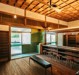 昔の面影を残してリニューアルされ、地元の人々の交流の場にもなっている銭湯「御所宝湯」で汗を流しましょう。風呂場の壁には御所の「葛城山」と「金剛山」が描かれ、懐かしい雰囲気が漂います。土壁のロウリュサウナと半露天スペースの水風呂の「ととのいスペース」も。地元の人との会話も旅の醍醐味ですね。