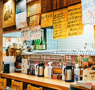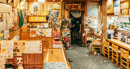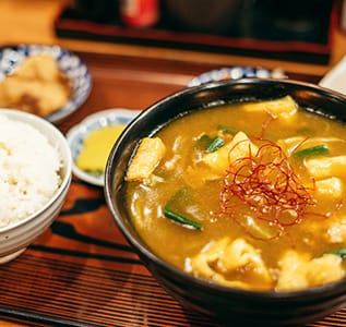 店内にメニュー札がたくさん並ぶ、どこか懐かしさを感じるまちの大衆食堂です。親子丼やカレーうどんなど、どれも心と体に沁みるおいしさ。「ただいま」と言いたくなるようなあたたかさがあります。