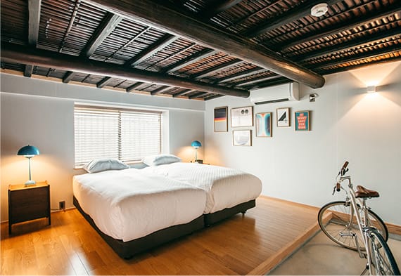 自転車旅お疲れ様です!RITA御所まちでチェックインを済ませ、預けた荷物を持って宿チャリンコへ。到着したら、ひと息つきましょう。キッチンスペースでパートナーと過ごすもよし、客室でゴロゴロするもよし。レトロな空間を写真に収めるのも楽しいですよ。キッチンスペースには簡単な調理器具が備えてあるので、ちょっとしたクッキングも楽しめます。