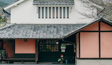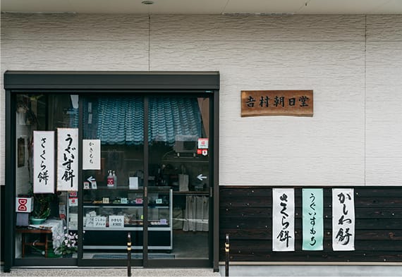 宿チャリンコの目の前にある老舗の和菓子屋さんです。御所まち名物「水まんじゅう」や、季節の生菓子をお土産にどうぞ。朝の静かな時間にできたての和菓子を眺めるのは、不思議と心が鎮まる時間になります。