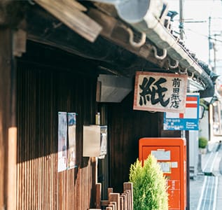 江戸時代の面影を残す町並みには、かつてのインフラである「背割り下水」や小さな祠が各所に点在。少し目を凝らしてみると、当時の歴史や文化が隠れています。ゆったりのんびり、マップを片手に御所まち歩きをお楽しみください。