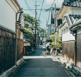 歴史情緒を感じる「御所まちエリア」から、自然あふれる「里山エリア」までを、自転車でぐるっとめぐる旅。醤油蔵や神社、おしゃれなカフェに立ち寄りながら、ゆったりとした時間の中で、気持ちよい風景とあたたかい人々に出会ってください。