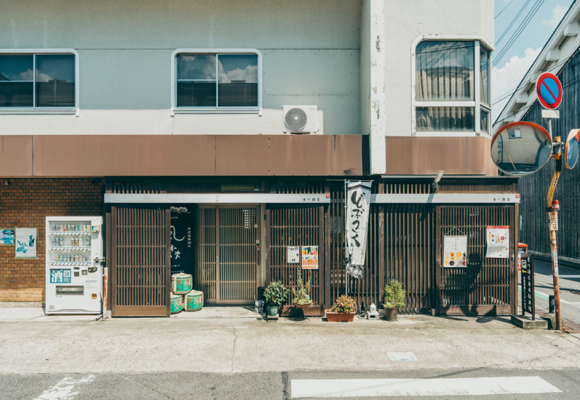 東川酒店は、JR御所駅から徒歩3分、新地商店街のアーケードを抜けた先にある老舗酒店です。御所市内にある3つの蔵元のお酒を豊富に揃える特約店として、県内外から日本酒愛好家が訪れます。
