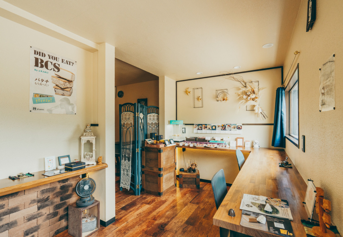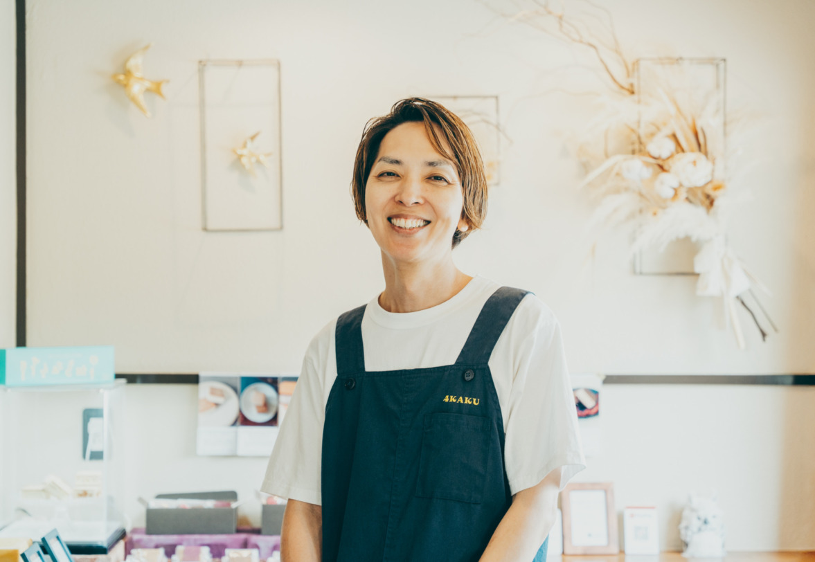 「4KAKU produced by K.Nakanishi」は、コンテナハウスで週に2日だけオープンするチーズケーキとバターチーズサンドの専門店です。お店のコンセプトは、「もうひと口食べたい」。看板商品のベイクドチーズケーキは、レモンなど酸味のある副材料は使わず、3種のクリームチーズにほんのり塩気のあるエダムチーズをプラスしたシンプルな味わいです。一口目からしっかりとおいしさを感じられる濃厚さがありながら、食べ終わった後にはもうちょっと食べたいと思ってしまう絶妙な仕上がりになっています。